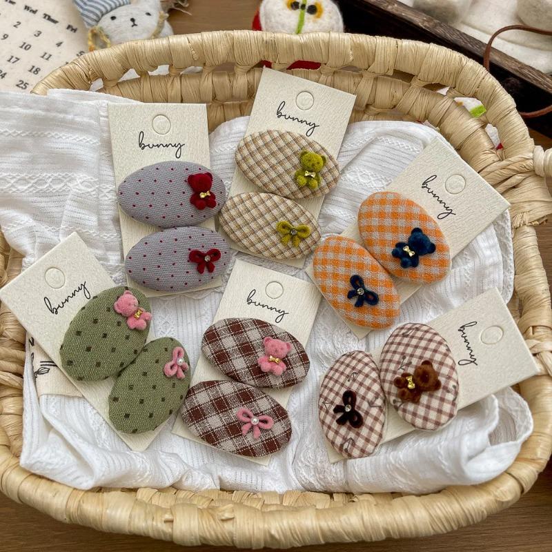 2 Pcs/Set Fabric Plaid Oval BB Clip Cartoon Hairpin Sweet Girl Hair Accessories Bangs Side Clip Barrettes Hair Clip Kids Headwear