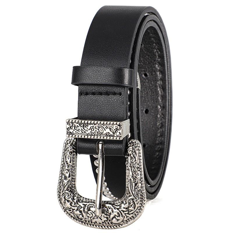 American fashion punk style belt for men and women, trendy carved silver buckle, rivet decoration, versatile belt for women