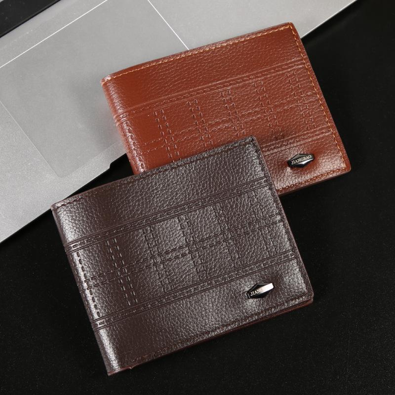 Men's Wallet Men's Short Wallet Solid Color Fashionable Embossed Horizontal Soft Leather Clip Large Capacity Multi Card Wallet