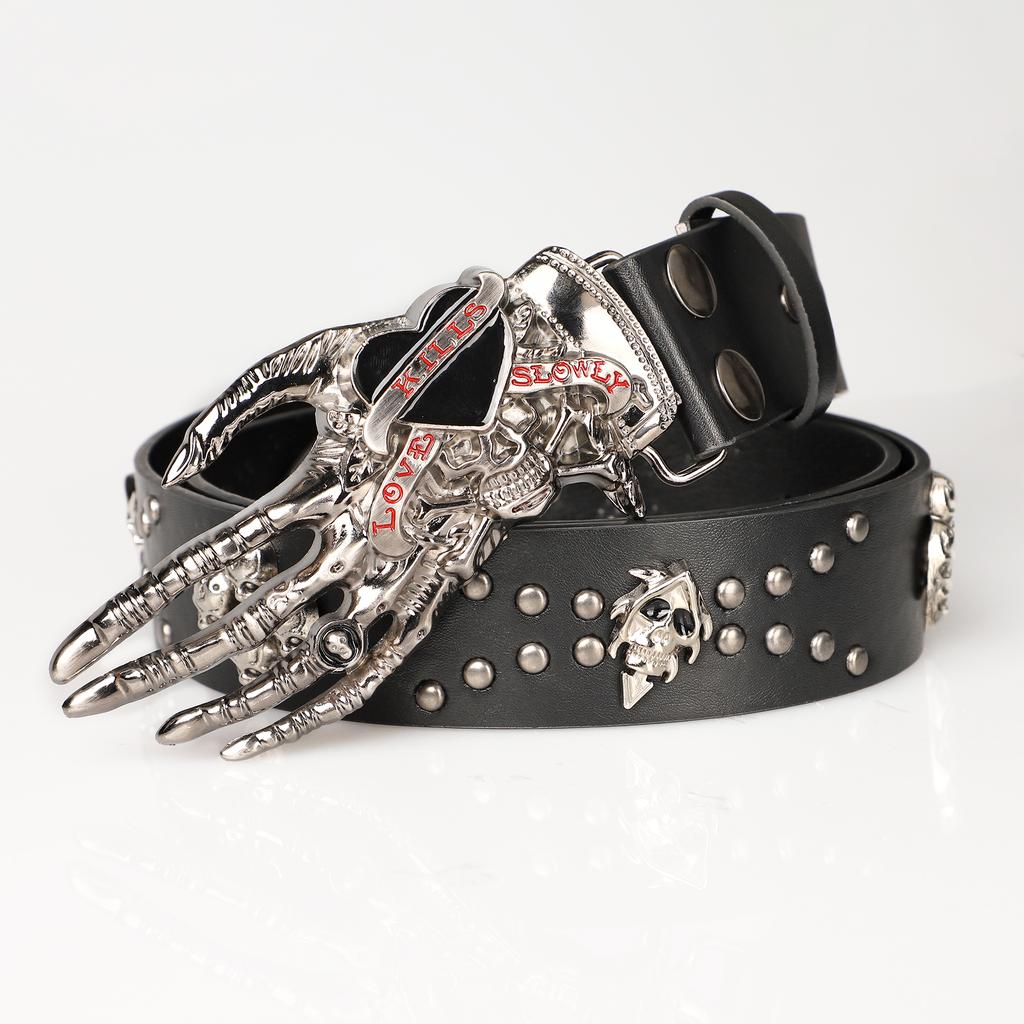 Gothic Punk Leather Y2k Belt For Women Men Skull Metal Buckle Waist Strap Designer Luxury Female Jeans Trouser Decorative Belts