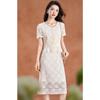 Experience elegance and style with this stunning midi dress, featuring a captivating rhinestone embellishment across its surface. This dress boasts a round neck design and unique patchwork detailing, creating a sophisticated faux two-piece look. The short sleeves add a touch of modernity, making it perfect for any occasion. Crafted entirely from high-quality polyester, this dress promises comfort and durability while maintaining its chic appearance. Ideal for making a statement, this dress effortlessly combines glamour with contemporary fashion.