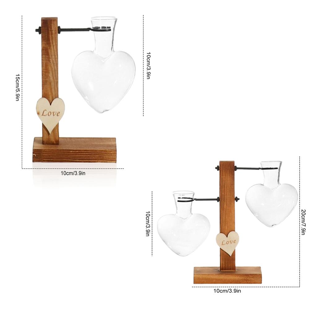 1Pc Heart Shape Hydroponic Vase Desktop Glass Plant Terrarium with Wood Support Stand Glass Vase Water Plant Propagation Station