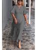 2026 Spring/Summer Women's Solid Color Loose Puff Sleeve Dress