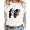 Wo Vintage Horse and Rider Print T-Shirt | Short Sleeve Round Neck Blouse with Horse Group Silhouette Design, S-XXL Sizes, Casual To Dressy Outfits,