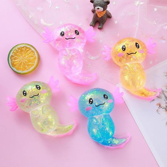 This adorable salamander toy is crafted from odorless, eco-friendly TPR material, ensuring durability and safety for both children and adults. Its cute cartoon design features pink gills and a smiling face, perfectly capturing a childs heart.