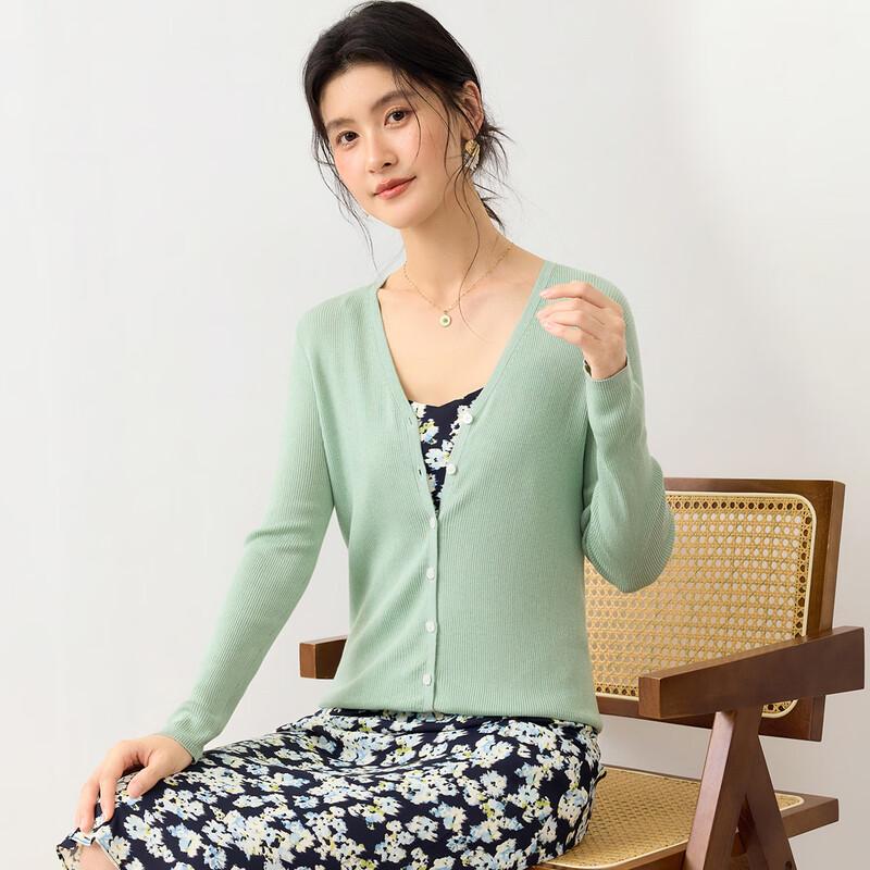 Women's Fine Knit Mulberry Silk Blend V-Neck Cardigan