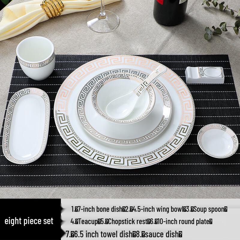 ZISIZ European Bone China 8-Piece Dinner Set with Wanzi Gold Design