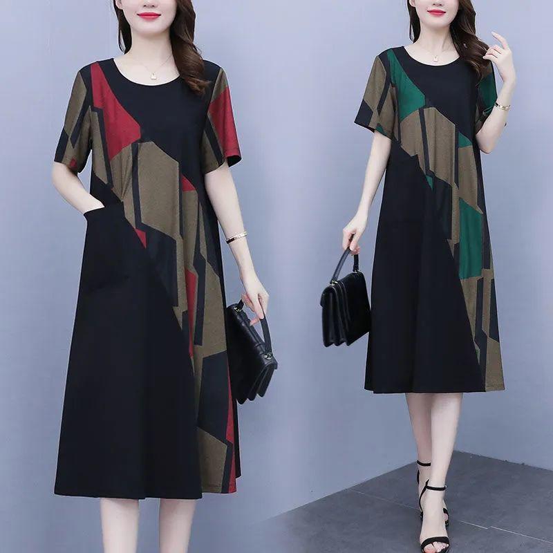 This stylish plus-size summer dress combines comfort and elegance with its loose-fitting design. Crafted from lightweight nylon, it offers a breathable and flowy fit perfect for warm weather. The dress features a unique patchwork pattern, adding a touch of sophistication to any casual outing or social gathering. The knitted fabric details enhance the overall aesthetic, providing a chic and contemporary look. Ideal for those seeking a versatile and flattering addition to their summer wardrobe.