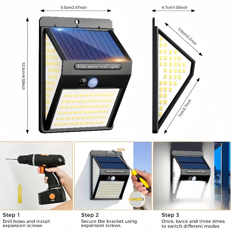 140Led Solar Security Lights Outdoor, Solar Motion Sensor Lights 270ºWide Angle Waterproof Solar Powered Durable Wall Lights Out