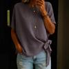 Women's Summer New Solid Color Short Sleeve Loose T-Shirt Top with Frill Hem