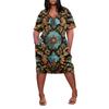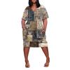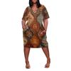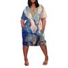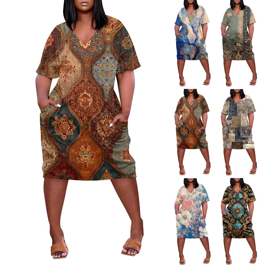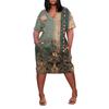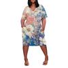 Letní nadměrné velikosti V výstřih krátký rukáv ke kolenům kapsa potisk ležérní šaty pro ženy