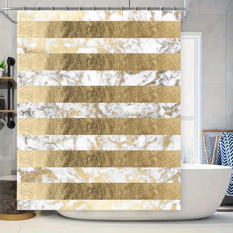 Modern Luxury Marble Striped Waterproof Shower Curtains with Golden Foil Accents for Bathroom Decorations Pack of 1 (Gold)