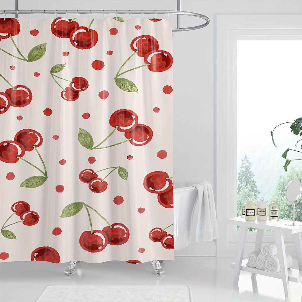 A Vibrant Cherry Delight Shower Curtain: Brighten Up Your Bathroom with This Cheerful Design Featuring Juicy Red Cherries