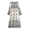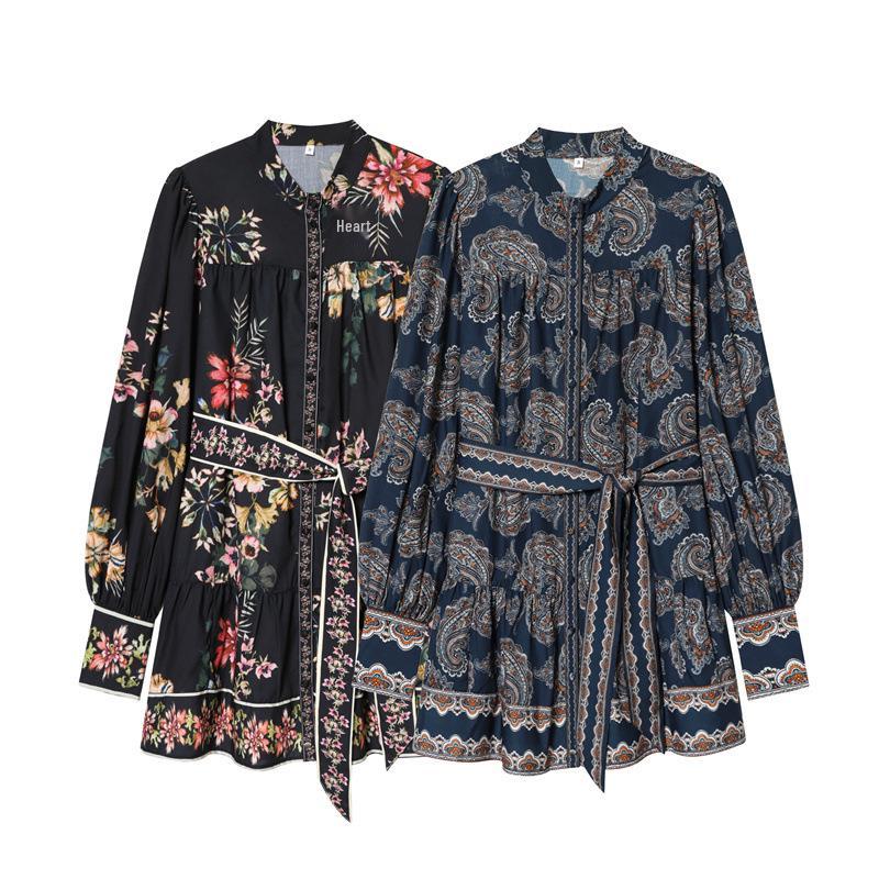 Spring 2026 European & American Style Women's Waist Tie Long Sleeve Printed Dress