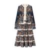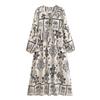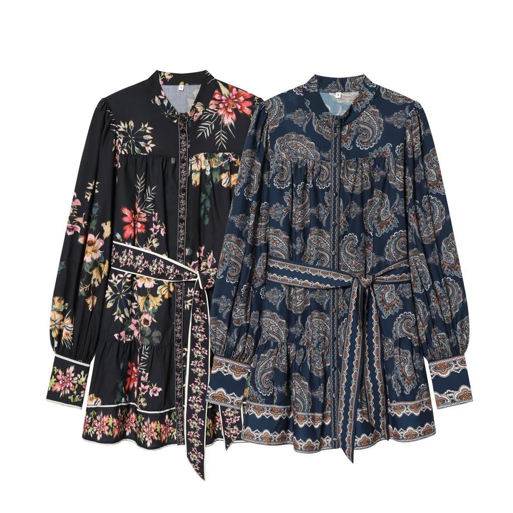 2026 Spring Women's Waist Tie Long Sleeve Printed Dress - European & American Style