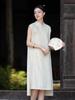 2026 Spring Chinese Style Handmade Frog Button Patchwork Slimming Zen Qipao Dress for Women