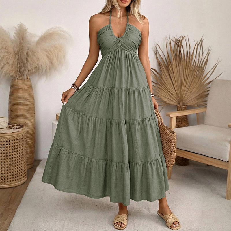 2026 Summer Halterneck Resort Maxi Dress - Backless Ruched Fashion for Women