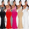 Elevate your wardrobe with this stunning rhinestone strappy midi dress, a new arrival showcasing the best of European and American fashion. Designed with a figure-flattering silhouette, this dress features a captivating hot-fix style adorned with shimmering rhinestones that catch the light beautifully. Crafted from high-quality mesh material, it offers a delicate and airy feel, perfect for making a sophisticated statement at any event. Ideal for those who appreciate bold yet elegant fashion, this dress promises to be a standout piece in any collection.