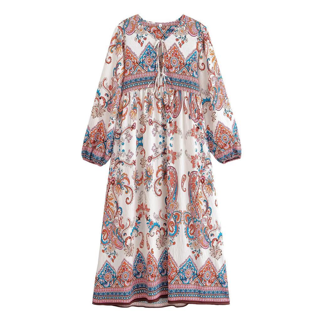 Embrace effortless elegance with this Bohemian Tassel Dress, designed for Spring 2026 in a fusion of European and American styles. This dress features a vibrant print and a relaxed, loose fit, offering both comfort and flair. Crafted from high-quality polyester material and blended with chemical fibers, it ensures durability and a luxurious feel. Perfect for any occasion, this dress is a versatile addition to your wardrobe, exuding a chic bohemian vibe with its playful tassel details.