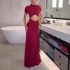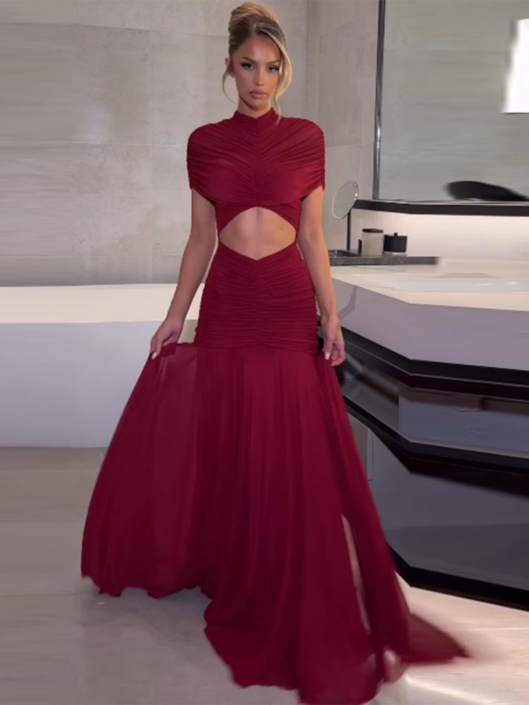 2026 Summer Women's Formal Pleated Cut-Out Maxi Dress with Mesh Details