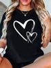 Women Black Tee Minimalist Love Heart Color Block Print Round Neck Short Sleeve Relaxed Fit Casual Top