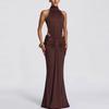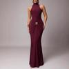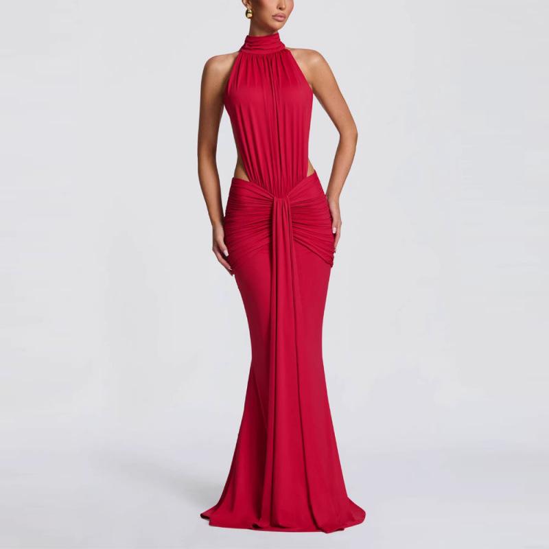 European-American Elegant Halterneck Pleated Slim Gown - Sexy Backless Long Dress