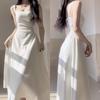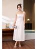 Discover timeless sophistication with this long dress, designed specifically for mature women. Crafted from high-quality acetate fabric, the dress features a unique crinkled texture that adds depth and elegance to its French-inspired style. The strappy design beautifully highlights the shoulders, making it a perfect choice for both casual gatherings and formal occasions.