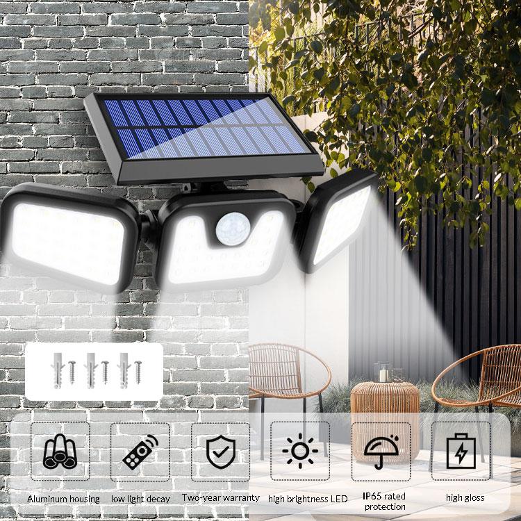 74 LED Outdoor Solar Light Triple-Head Rotatable Wall Mount Lamp PIR Motion Sensor Security Light for Home Garden Yard Road