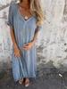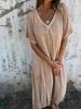 2024 European & American Semi-formal V-neck Cotton Linen Dress