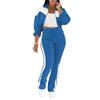 Elevate your casual wardrobe with this stylish two-piece outfit, featuring a long sleeve zipper jacket and matching bottoms. The set showcases a trendy color block pattern, enhanced by unique patchwork and quilted decorations for an eye-catching finish. Crafted from comfortable and stretchy spandex material, this ensemble is designed for a casual, yet sporty look that’s perfect for everyday wear.