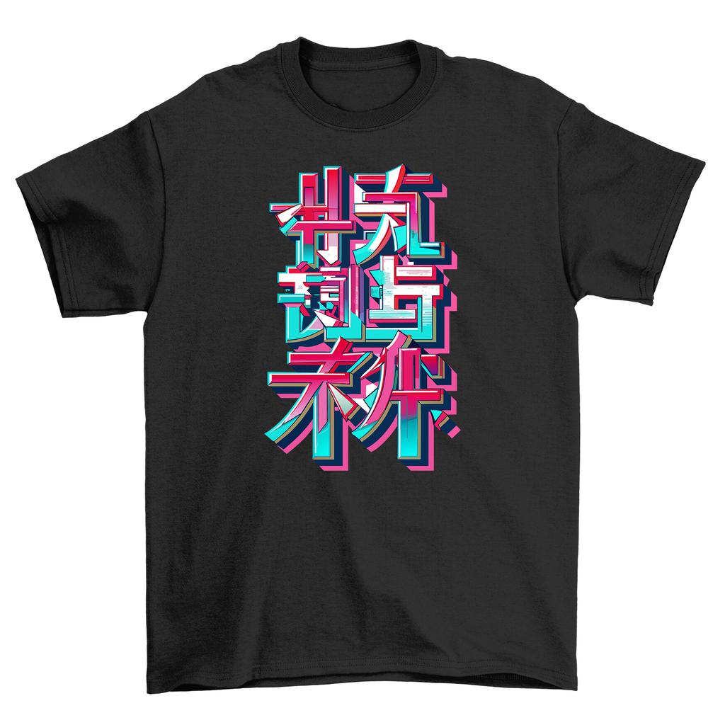 Neon Anime Text T-Shirt Mens Womens Tees Top - Embrace the Glowing Geeks! Funny Chinese Characters Te