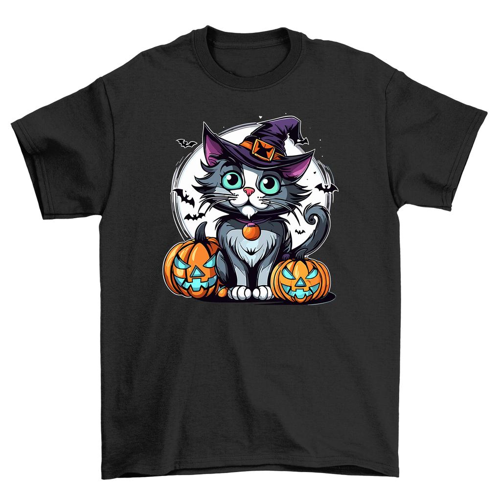 Halloween_229 Cat Witch Funny T-Shirt Mens Womens Tees Top - Purr-fect for spooky season! Unisex Prin