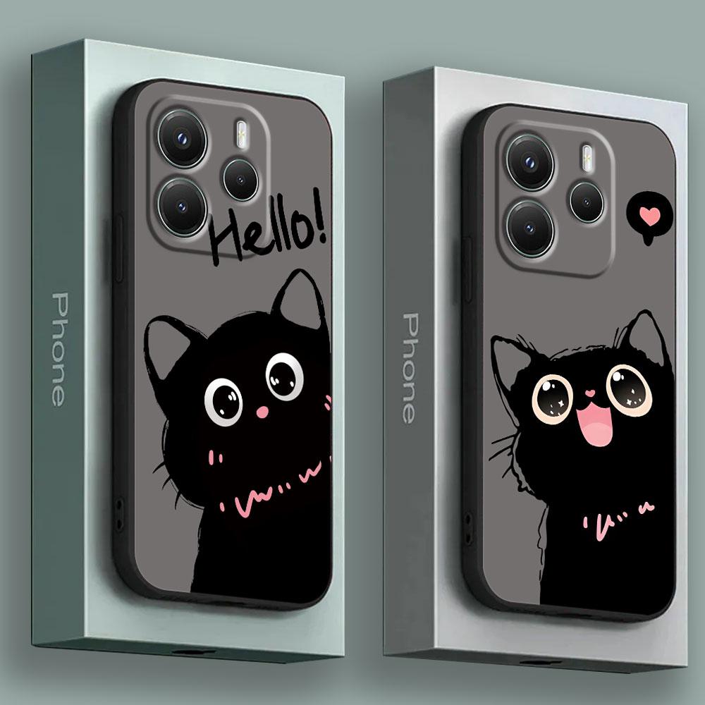 Black Cats Cute cat Hello Phone Case for Xiaomi Redmi 14C 12C 10C 13C 4G Redmi Note 14 13 12 11 10 Pro Plus 5G 12S 9S Soft Cover