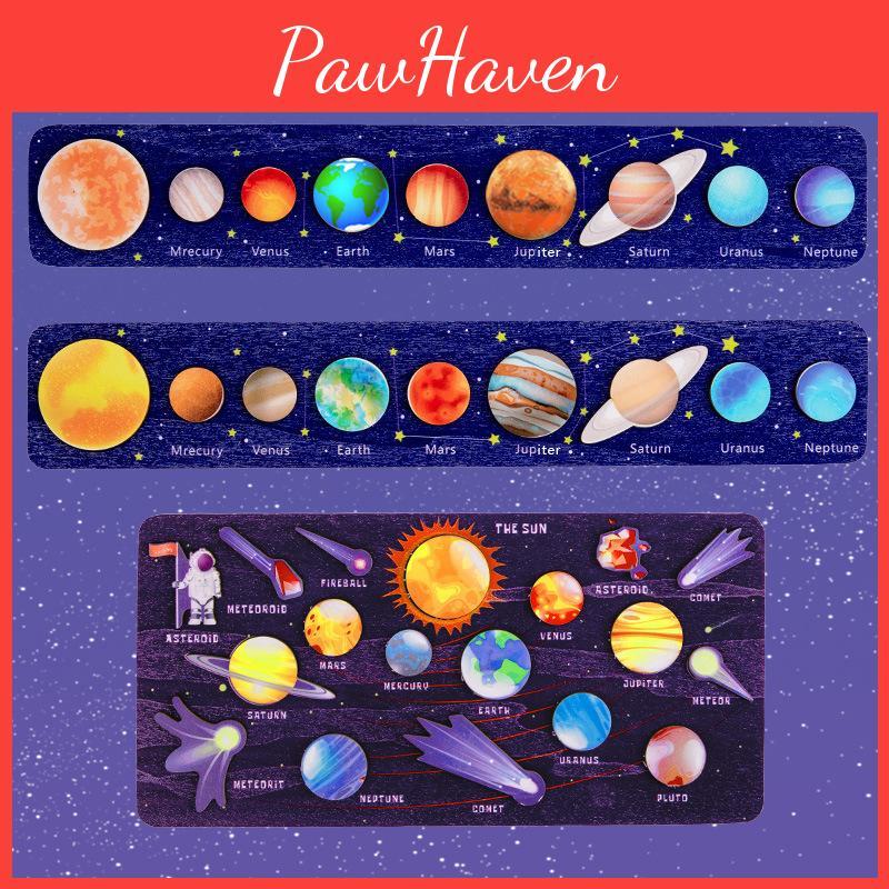 Dětské vzdělávací vesmírné puzzle s dřevěným slunečním systémem pro učení a kognitivní rozvoj