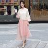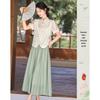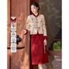 This stylish retro Chinese-style outfit combines traditional elegance with modern comfort, featuring an oblique lapel stand collar top adorned with intricate frog buttons. The matching ethnic skirt enhances the ensemble, offering a seamless flow that celebrates cultural heritage. Crafted from a high-quality polyester-spandex blend, the outfit ensures a comfortable and flexible fit, perfect for both casual and formal occasions. The timeless design and meticulous attention to detail make it a standout piece in any wardrobe.