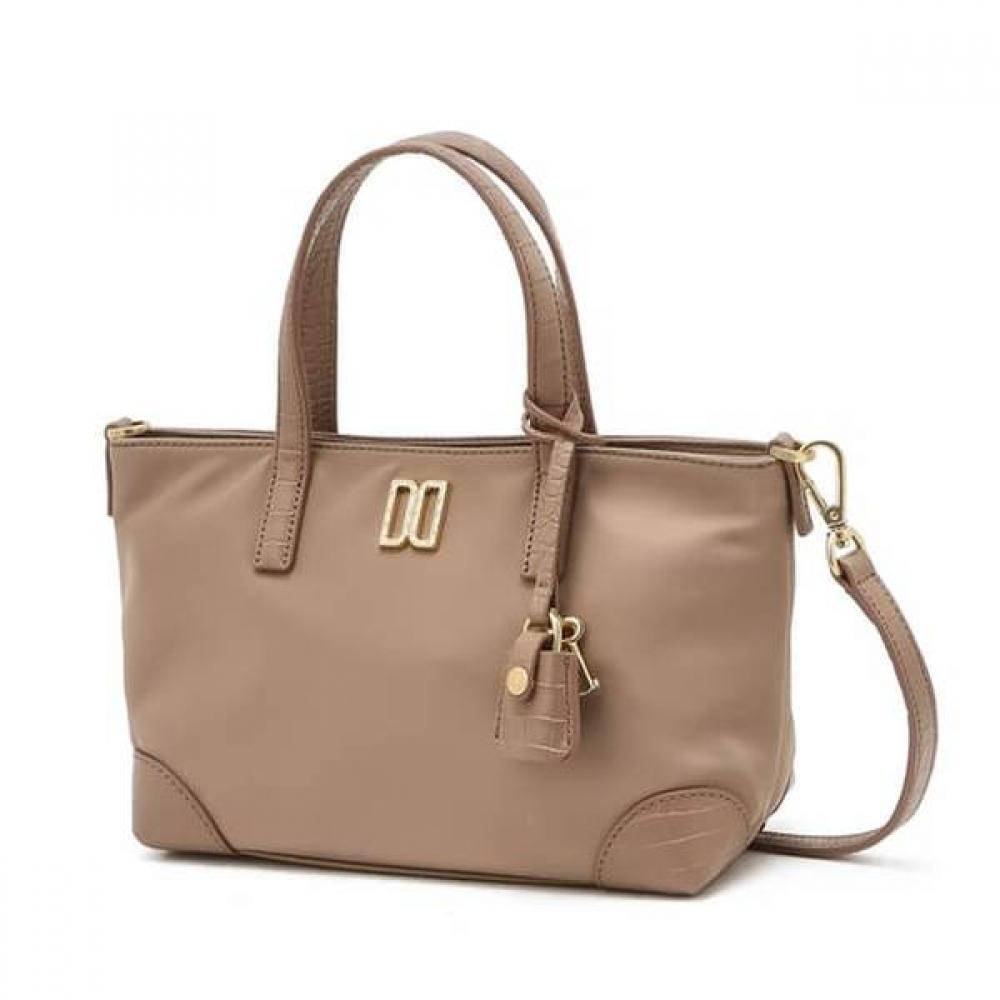 The DCBA6E060P1 [Belford] Ivory Croco Leather Mixed Nylon Tote Bag S harmonizes a calm color palette with a gold DD logo decoration, adding a touch of sophistication. Crafted from a soft leather and nylon blend, it is stylish and features a detachable strap for versatile styling. It also includes two internal pockets and one rear pocket for added functionality.