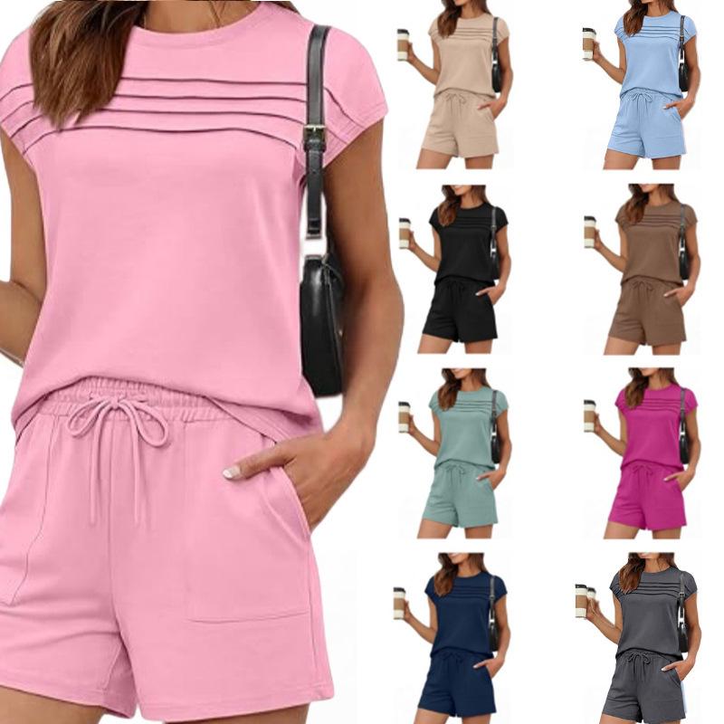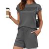 Elevate your warm-weather wardrobe with this chic two-piece set designed for style and comfort. Crafted from high-quality polyester, the ensemble features a striped casual top that effortlessly pairs with solid color shorts. The soft, lightweight material ensures a comfortable fit, making it ideal for laid-back days or casual outings. Embrace a relaxed, fashionable look that combines European and American influences, perfect for any summer occasion.
