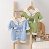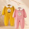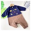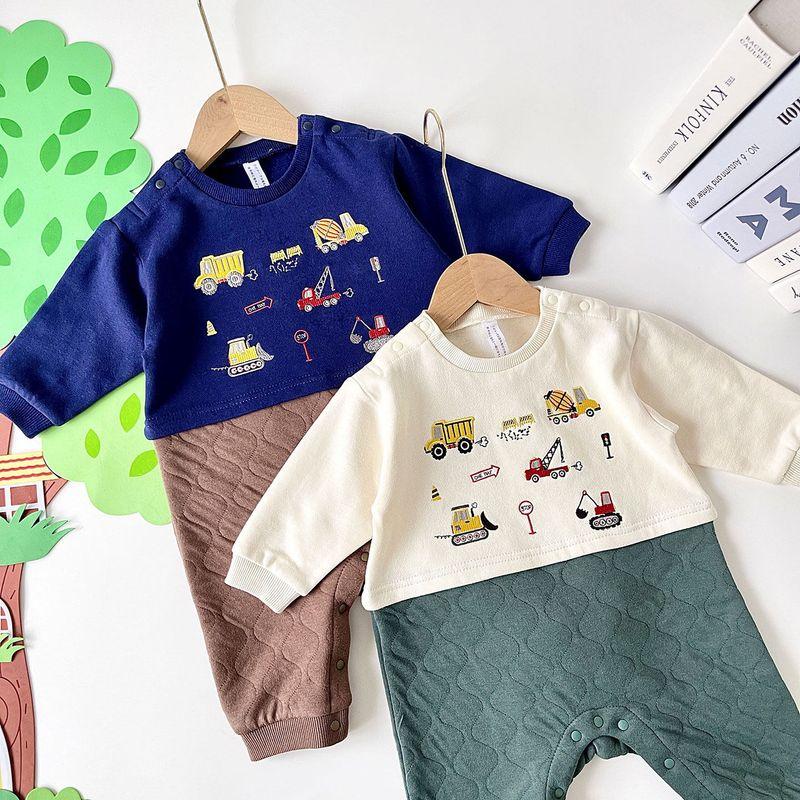 Construction Vehicle-Themed Thickened Baby Romper for Boys, Warm Air Layer Jumpsuit, Size 70-80, Soft and Warm
