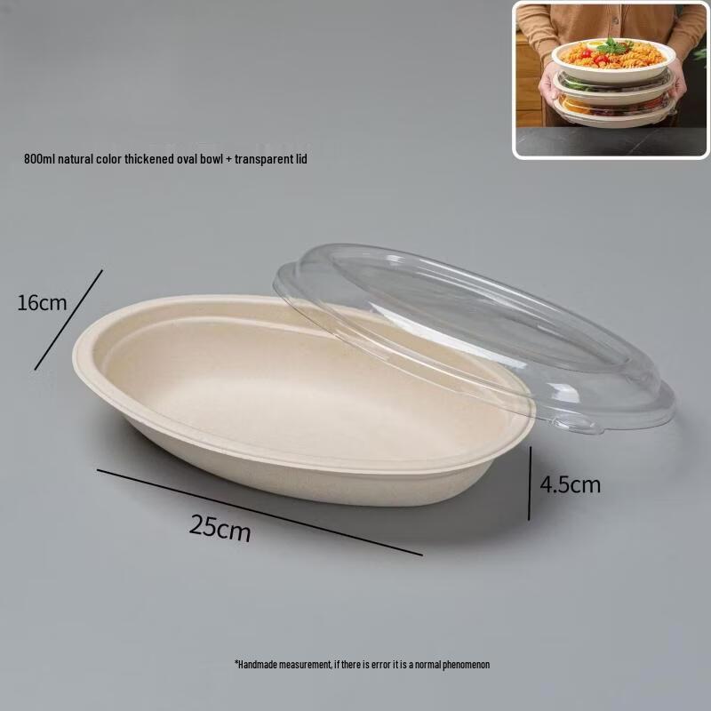 Disposable Wheat Straw Oval Takeaway Bowls with Lids, 800ml (100-Pack)