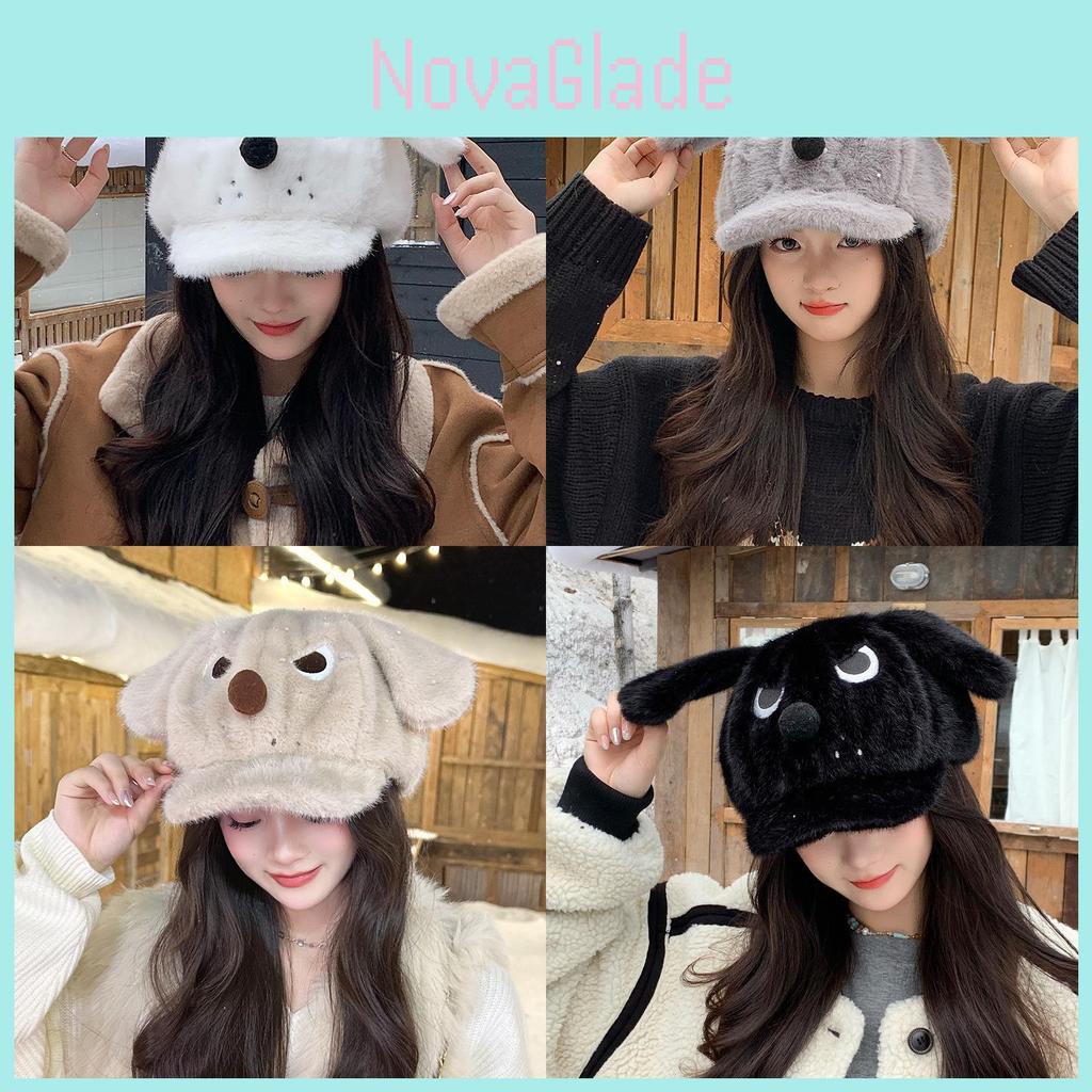 This plush cartoon dog baseball cap features a rounded crown and short brim, crafted from 61-70% polyester fabric for warmth and wind resistance. Measuring approximately in head circumference, it offers a cozy fit for winter outings. Ideal for casual, streetwear, or themed events, it provides stylish protection against cold weather. Easy to clean with a damp cloth, this cute accessory enhances winter fashion with its playful design and soft texture.