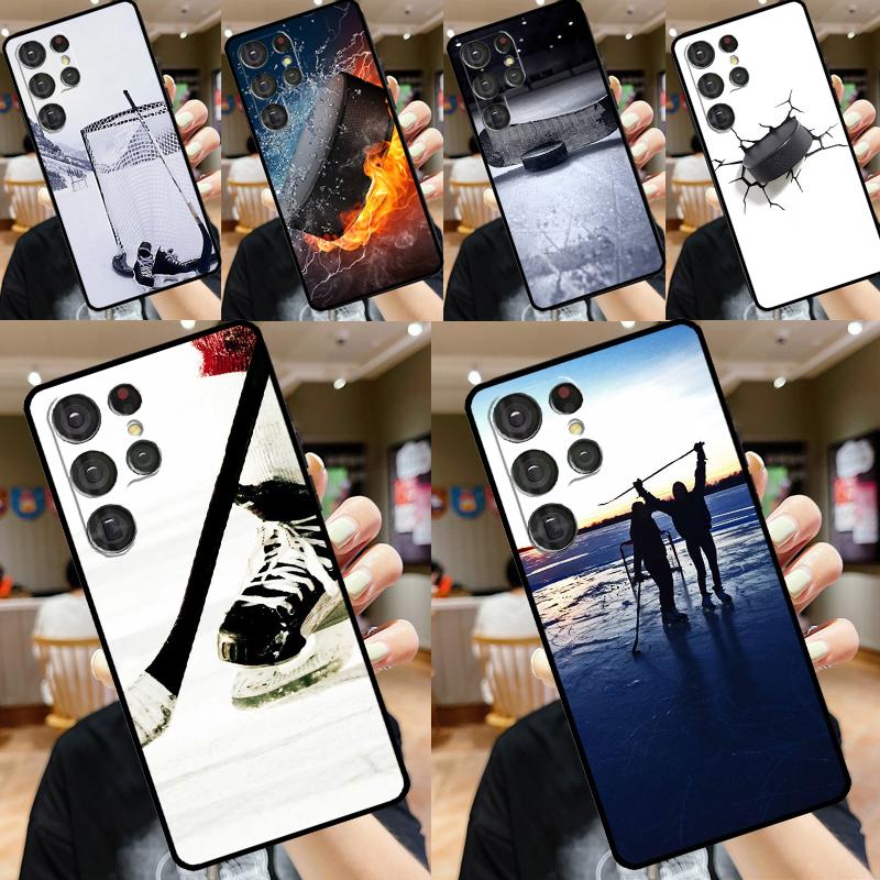 Hockey Stick and Puck Case For Samsung Galaxy S21 S22 S23 S24 Ultra Note 20 Note 10 S8 S9 S10 Plus S20 FE Cover