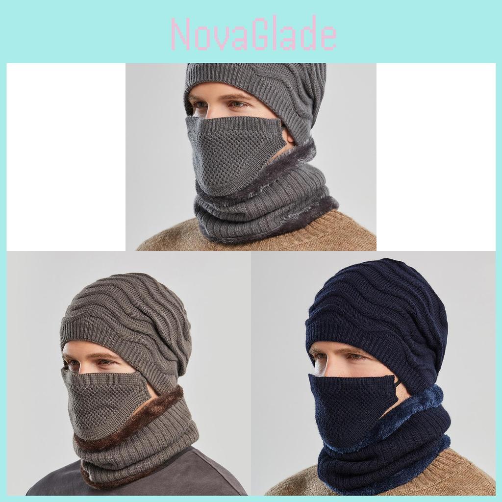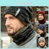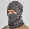 Knitted Hat Men Winter Warmth Windproof Cap Scarf Threepiece Set For Commuting