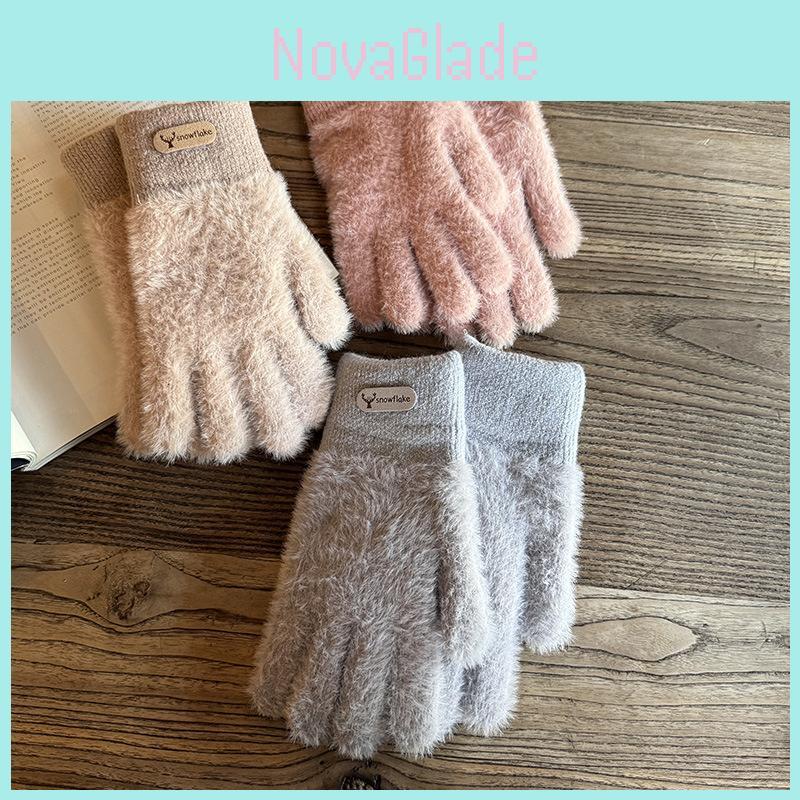 These fashion-forward winter gloves feature a double-layer design with plush faux mink fur for enhanced warmth and wind resistance. Made from soft, durable materials, suitable for cold weather. Ideal for daily commuting or outdoor activities, they are easy to maintain by wiping clean with a damp cloth.