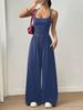 Experience effortless style with this women's casual camisole jumpsuit, blending European and American fashion influences. Crafted from luxurious artificial silk material, the jumpsuit offers a soft and comfortable fit, perfect for summer. It features a sleeveless design for a breezy feel and wide-leg, loose-fitting pants for a relaxed yet elegant silhouette. Ideal for casual days out or laid-back gatherings, this versatile piece is a must-have for any summer wardrobe.
