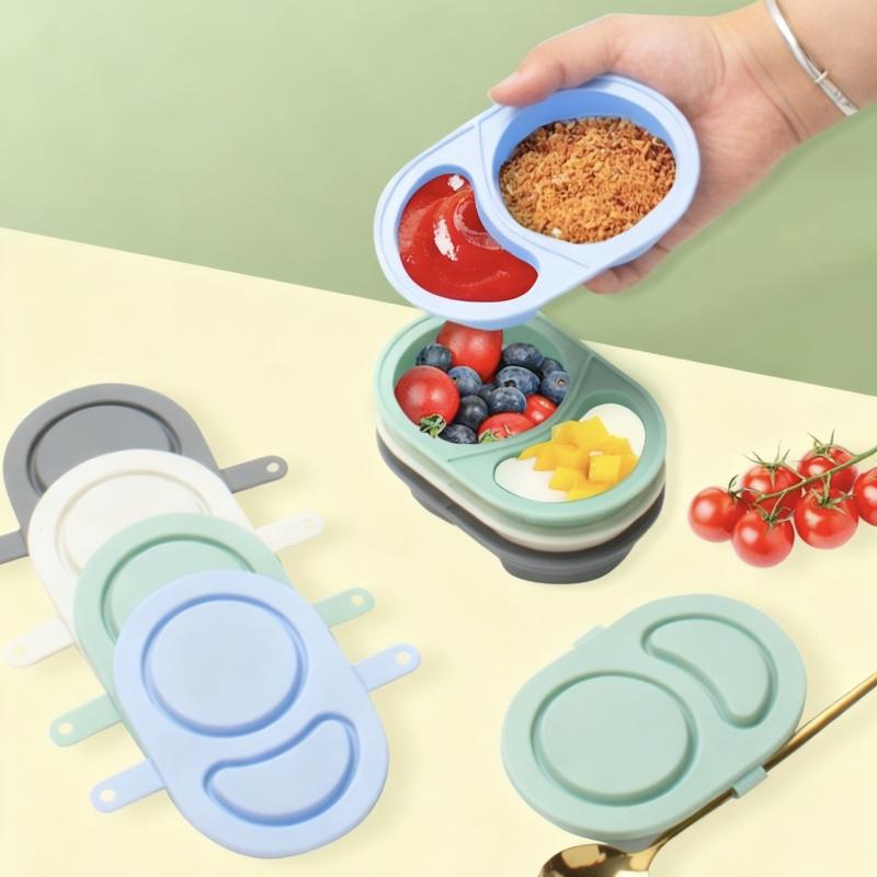 Reusable Snackle Box Containers Silicone Snack Containers With Lids Foldable Double Compartment Condiment Bowls Kitchen Gadgets