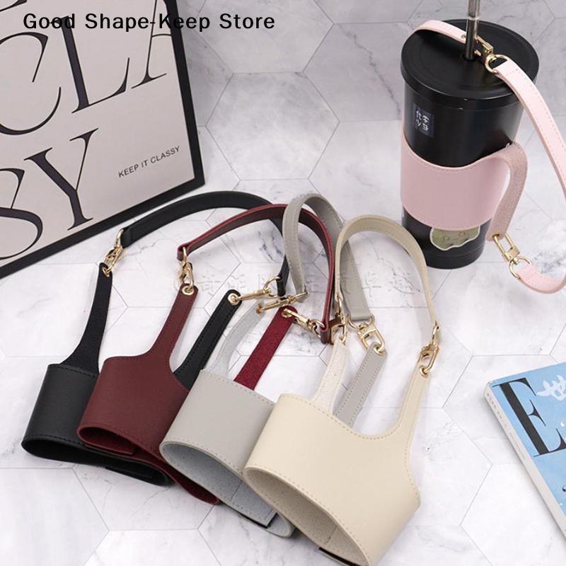 Leather Cup Cover Pouch Portable Leather Carrying Strap Insulating Cups Water Bottle Sleeve Bag Milk Tea Coffee Cups Accessories