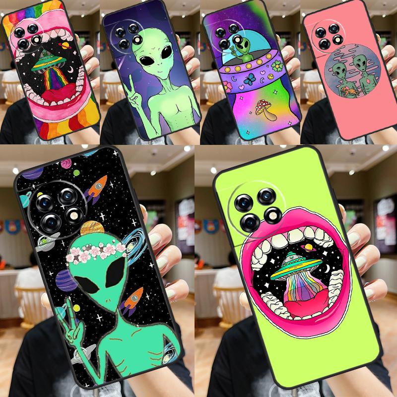 Aesthetics Cartoon Alien Space Case For OnePlus 12R 12 11 10 9 Pro 10R 9R 8T 10T Nord 3 2 CE 4 Lite N10 N20 N30 Back Cover