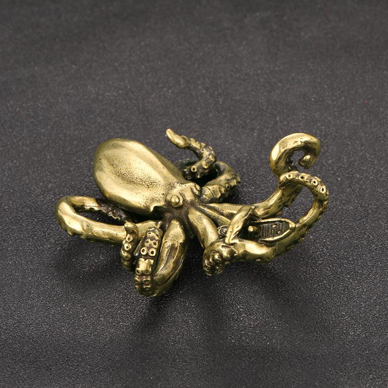 Retro Octopus Figurines Miniatures Solid Brass Sea Animal Statue Tea Pet Desk Ornament Lucky Home Decorations Accessories Crafts