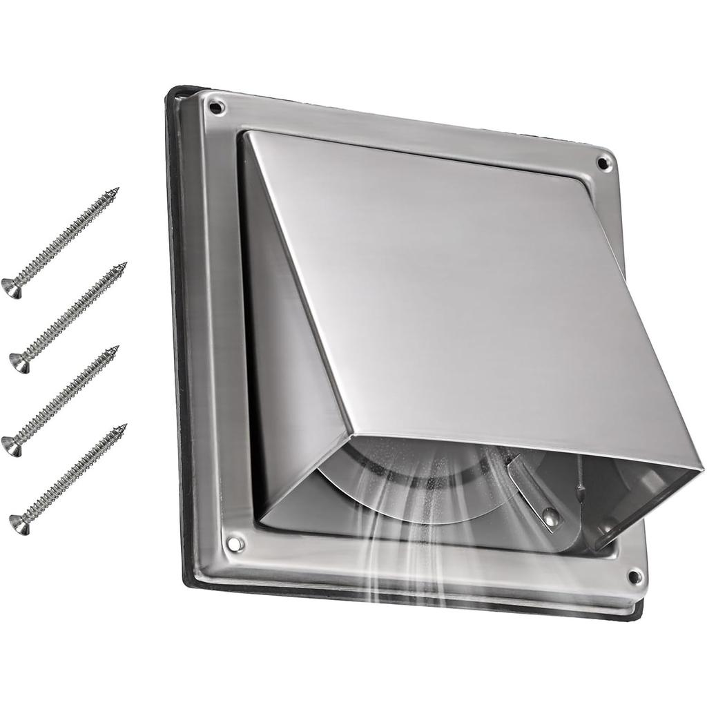 Stainless Steel 4 inch Dryer Vent Cover with Removable Cover, Square Wall Vent Waterproof Wall Extractor Grill Air Vent Cover for Indoor or Outdoor
