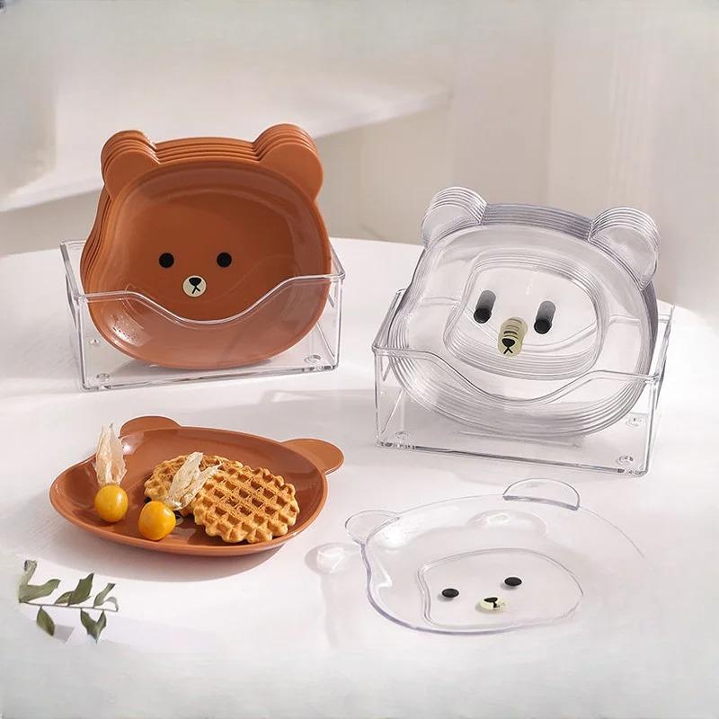 Cute Bear Shaped Bone Spitting Dish Cartoon Plastic Snack Tray Set Kitchen Desktop Anti Fall Plate Residue Fruit Plate Tableware